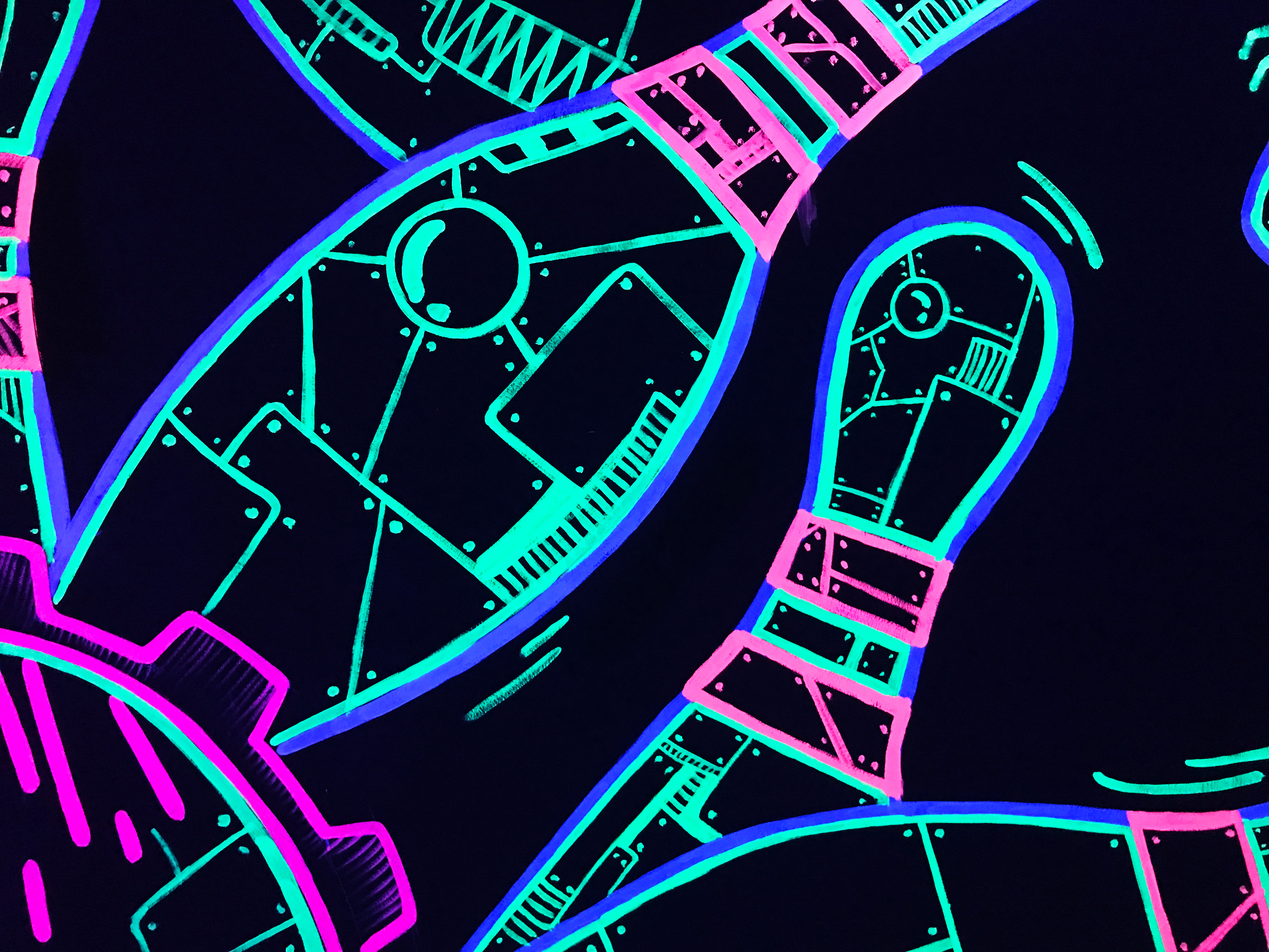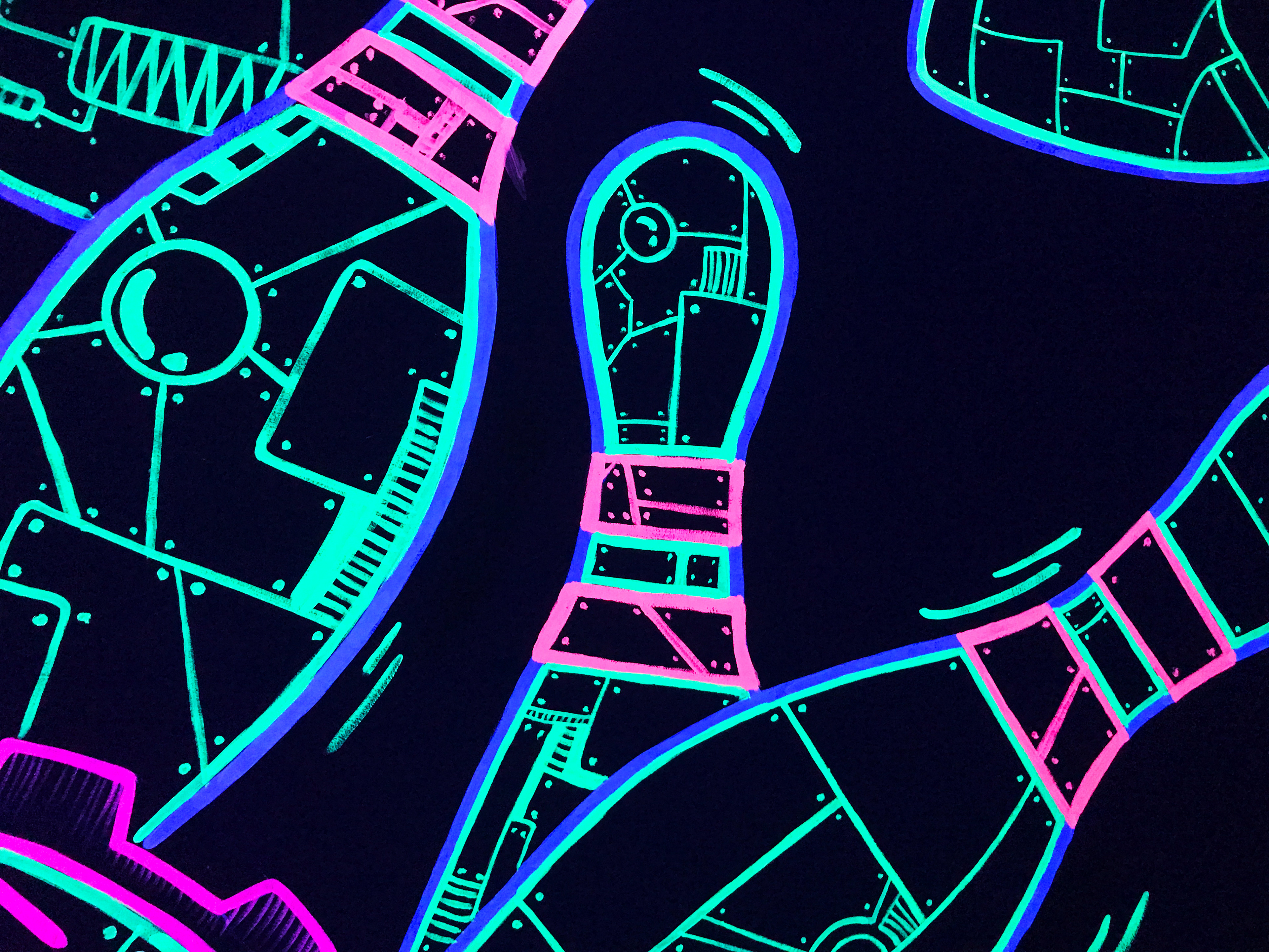 다양한 컬러의 형광안료를 사용하고 디테일한 라인들을 그려줌으로서 더욱 화려하게 완성되었습니다.