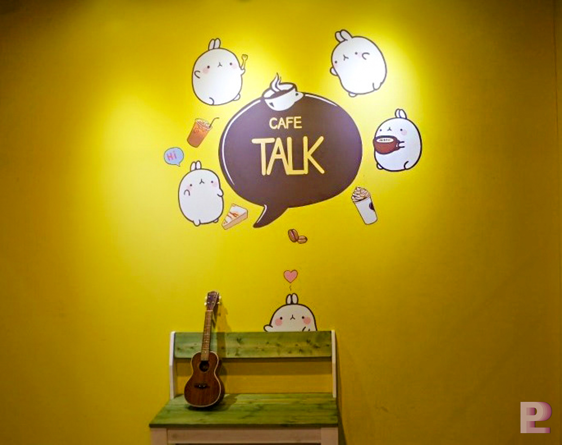 인천에 위치한 "카페톡" 커피숍에 시공된 일러스트 인테리어벽화 입니다.